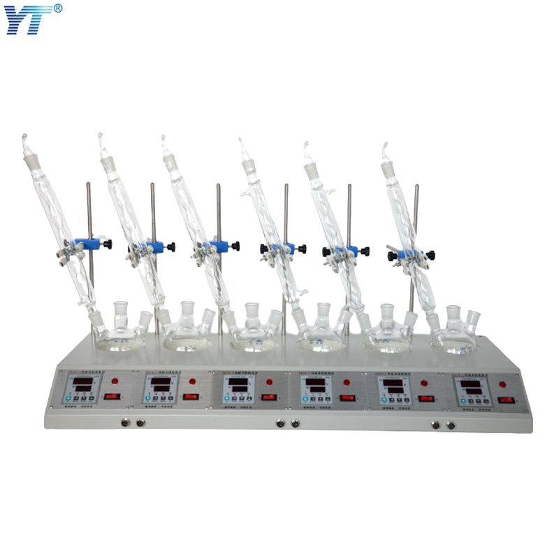 PTHW-DLT型,多联调温,电加热套PTHW-DLT型电热套是通过电子调压实现恒温加热的电热套,它是用无碱玻璃纤维作绝缘材料,将Cr20Ni80合金丝簧装置于其中,用硅酸铝棉经真空定型的半球形保温体保温,外壳一次性